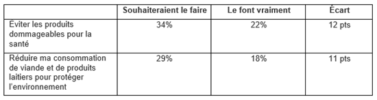 - Au-delà du rôle réservé aux entreprises, les consommateurs eux-mêmes souhaitent agir personnellement mais avouent que leur comportement n’est pas toujours à la hauteur de leurs ambitions.