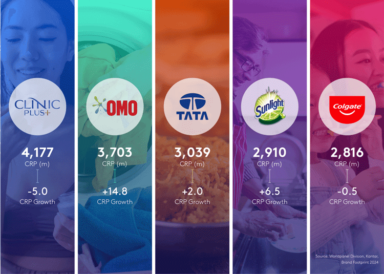 Brand Footprint examines the 232 billion brand choices made by Asian shoppers in 2023, using Kantar Worldpanel’s unique Consumer Reach Point (CRP) methodology. This combines data on population, penetration, and consumer choices (frequency) to determine the most chosen brands.
