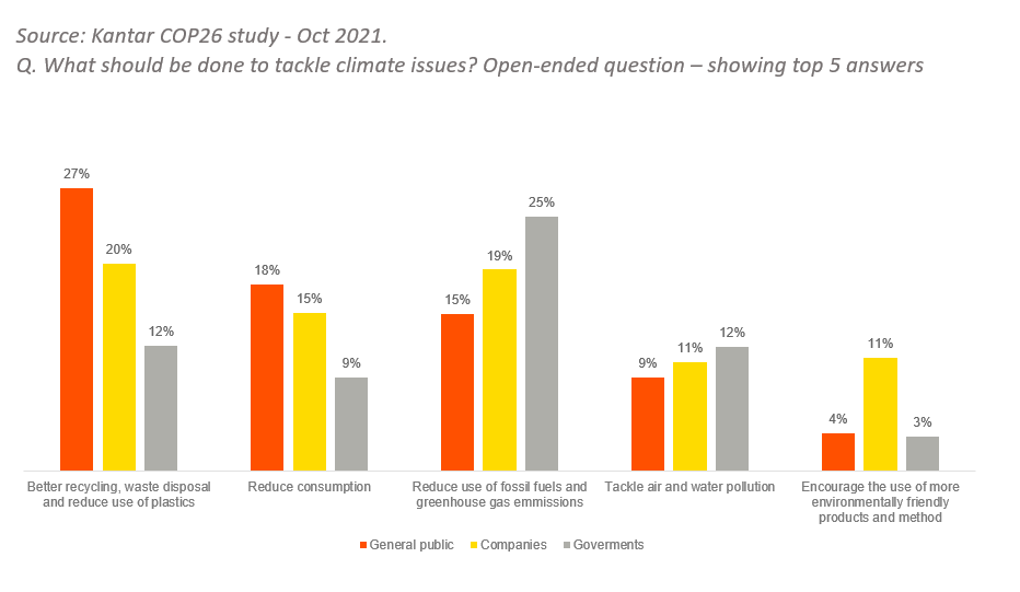 In parallel, we know from previous Kantar research that, at the moment, people are focused on better managing their waste and reducing their consumption to tackle climate change issues.