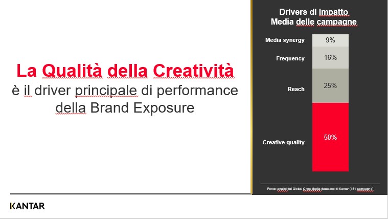 Mentre osserviamo che grande attenzione ed energia sono spesi nel settore e nell’ottimizzazione dei piani media per l’efficacia delle campagne, non vediamo la stessa attenzione alla potenziale performance della creatività stessa. Quante comunicazioni vengono pubblicate, messe in onda, online…senza che ci sia evidenza effettiva del loro potenziale? Un peccato considerando che la qualità della creatività è il singolo driver più importante d’impatto degli investimenti sulla visibilità del Brand e che l’opinione o le convinzioni “personali” su un copy non si sono mai rivelati il miglior giudice.