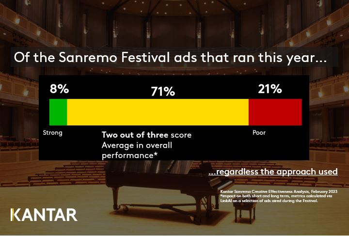 A prescindere dall'approccio utilizzato, 2/3 delle comunicazioni andate on air durante il Festival non dimostra avere una performance molto solida.