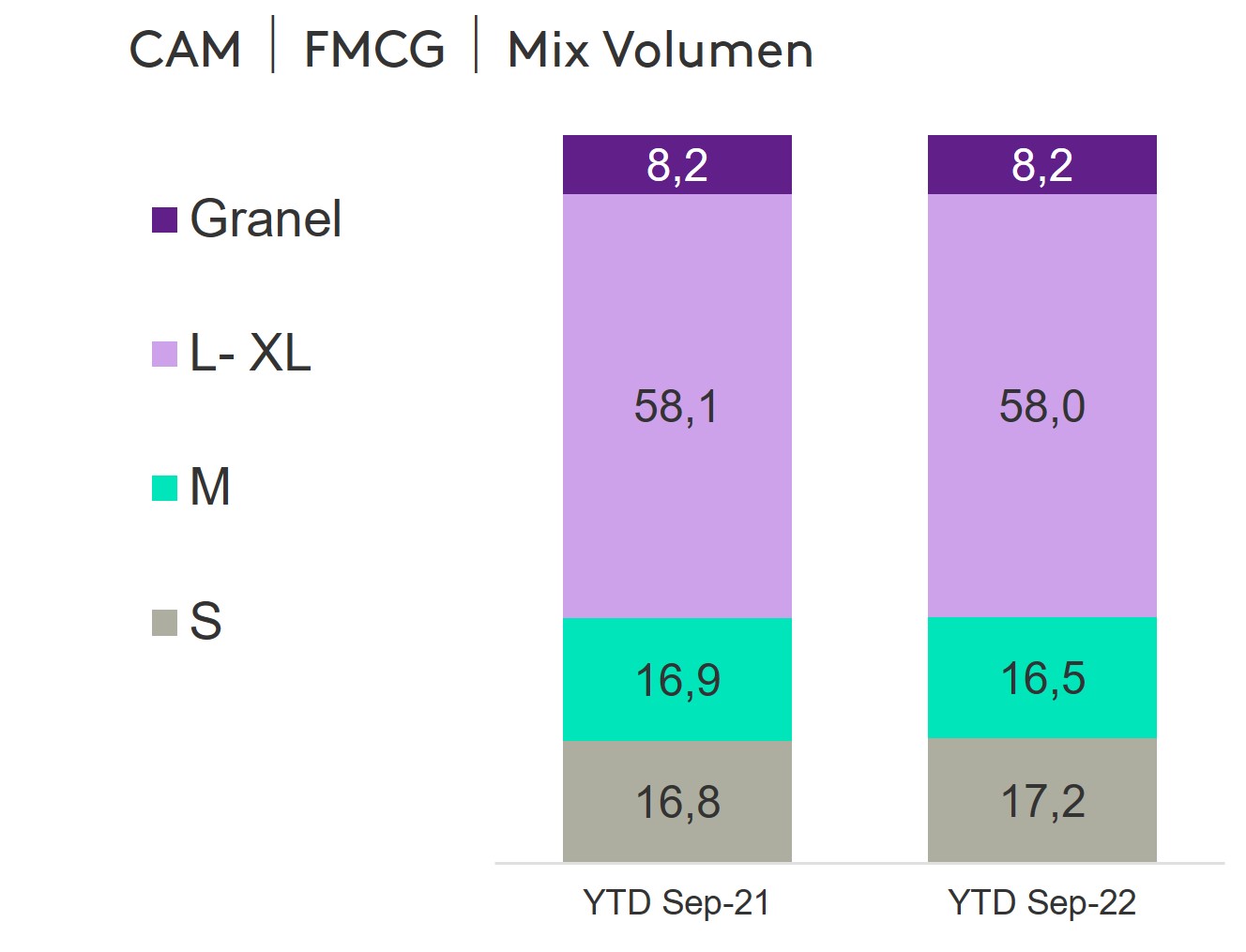El consumidor está buscando optimizar su gasto por lo que está comprando tamaños pequeños o granel, siendo esta última una opción atractiva, ya que crece (8%), al ser flexible la cantidad o gramaje a llevarse esto permite al shopper hacer un desembolso de acuerdo con sus necesidades y a lo que su bolsillo le permite.