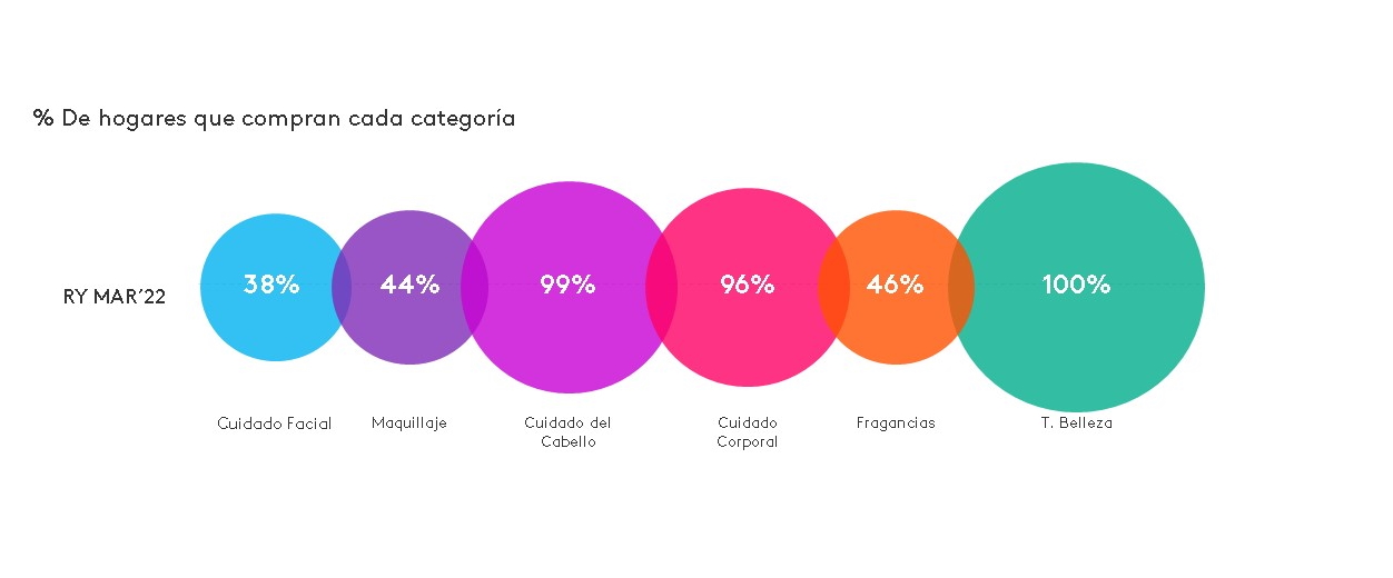 Mientras que las categorías relacionadas con Cuidado del Cabello y Cuidado Corporal están presentes en casi todos los hogares mexicanos, las de Cuidado Facial, Maquillaje y Fragancias tienen una oportunidad de crecimiento de más del 50% en el mercado.
