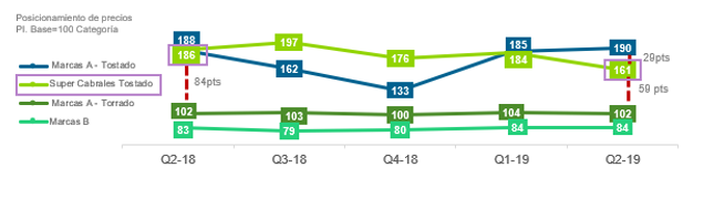 Accionando sobre el posicionamiento de precios, la marca pudo cerrar la brecha con los segmentos tradicionales (torrado) y desacelerar los aumentos respecto de otras opciones premium (tostados). El esfuerzo realizado por la marca tuvo su compensación de parte de los hogares, lo que se vio reflejado en un aporte positivo a la categoría (en volumen).