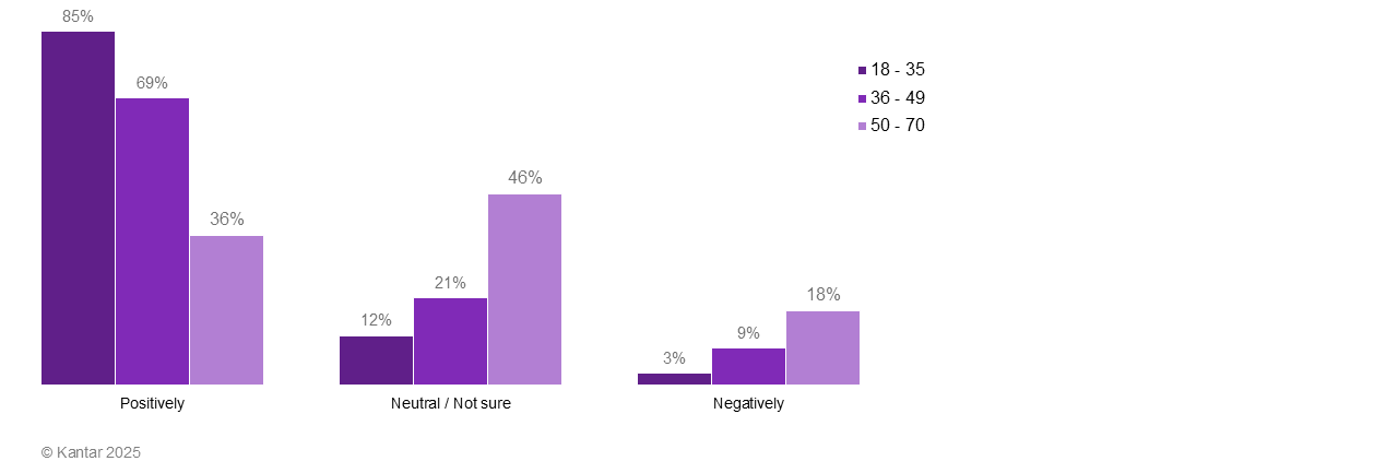 And while the data on young people speaks loudest, the point applies to all consumers surveyed. Even for respondents aged 50 to 70, who were less excited about AI, 36% think they will benefit, 46% are not sure, and only a minority of 18% expect AI to have a negative impact on them personally.