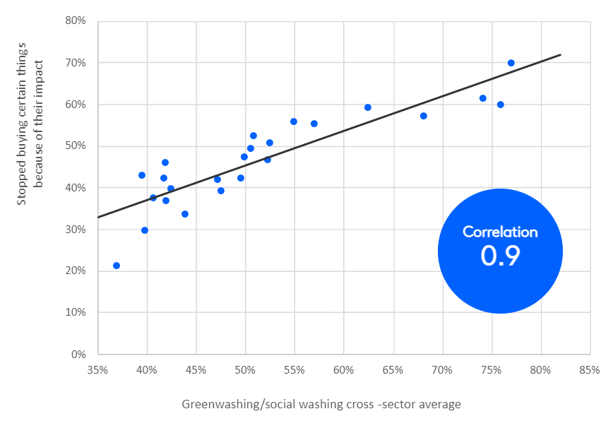 Even more worryingly, the data shows that the more people perceive greenwashing, the more likely they are to drop those brands out of their consideration set and reject them.