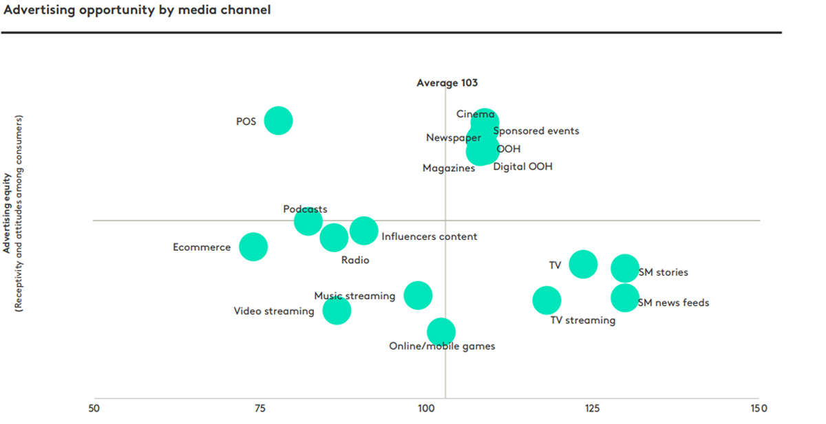 Given the huge and continuous year on year growth in global digital investment, most marketers are understandably preoccupied with the digital elements of their campaigns. However, to achieve the very best campaigns, it is not only about digital transference, we also know that a campaign’s success relies heavily on the interaction and integration of content across a wide range media channels. Digital is the backbone of most campaigns and TV has an enduring importance but if you disregard print and out of home, you are missing out on significant opportunity. Newspapers, magazines, digital and non-digital out of home ads sit in a sweet spot of the advertising opportunity quadrant. Meaning consumers are not only more receptive to these ad channels but also spend more time with them on an average day.
