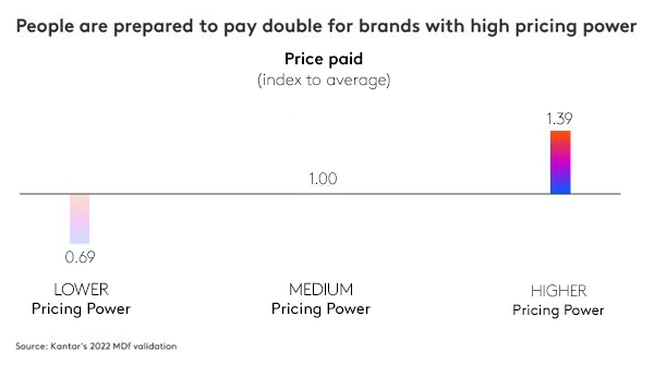 When they do, consumers demonstrate a willingness to pay significantly more – up to double that of cheaper alternatives. This is what we call pricing power. Our data shows that with every additional point in pricing power, you can justify a four-point increase in relative price.