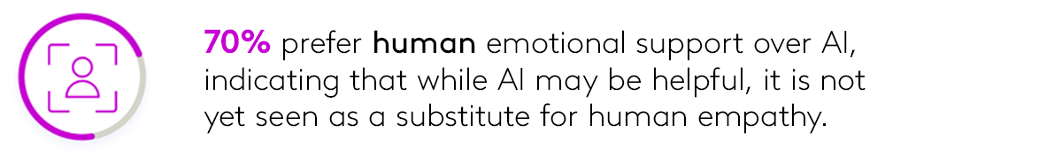 So, while there’s growing interest in AI as a support tool, many consumers still question its emotional depth and prefer human connection when it really matters.