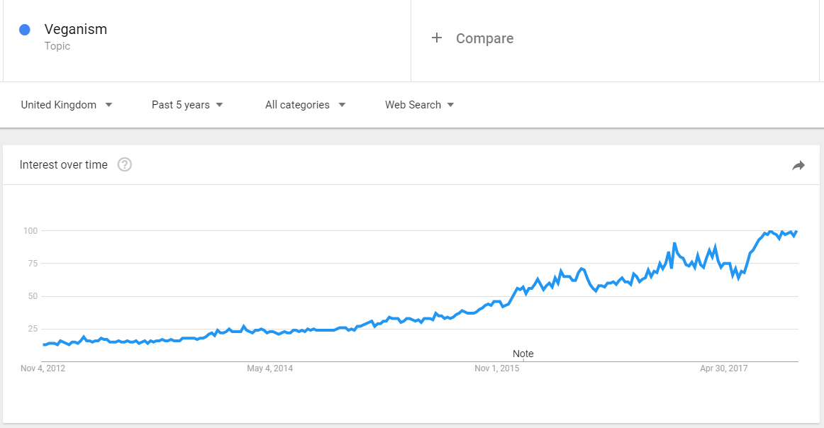 As countless lifestyle bloggers, the superstar Beyonce and even Jeremy Corbyn publicly embrace and promote (to varying extents) the virtues of a plant-based diet, the UK appears to be following suit – or at least become more interested in the idea of veganism.