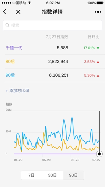 由于微信指数能衡量一个词在微信指数在微信内的热度情况,包括微信搜索、公众号文章以及朋友圈公开转发文章形成的热度,所以在微信指数上搜索一下了三者的比较。