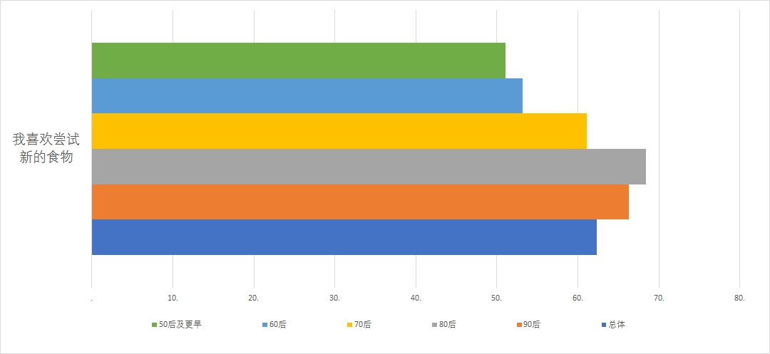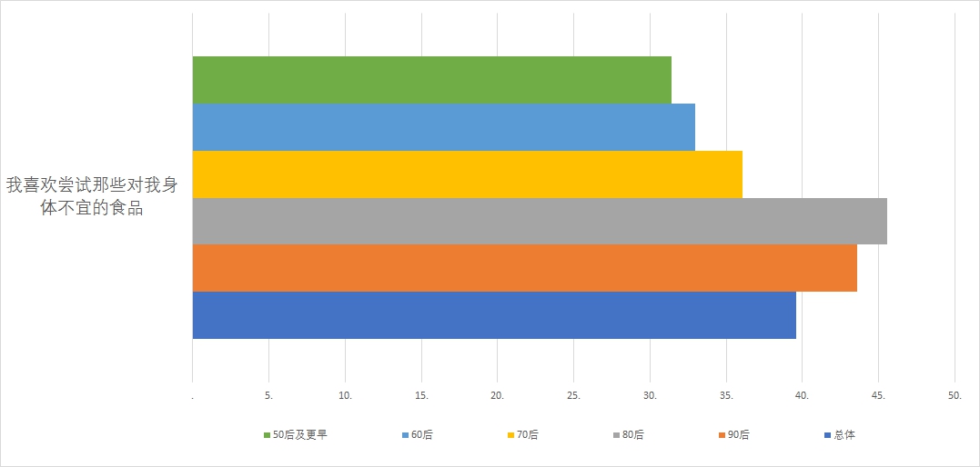 “我喜欢尝试新的饮料” “我喜欢尝试新的食物” “哪怕是对身体不宜的食品”